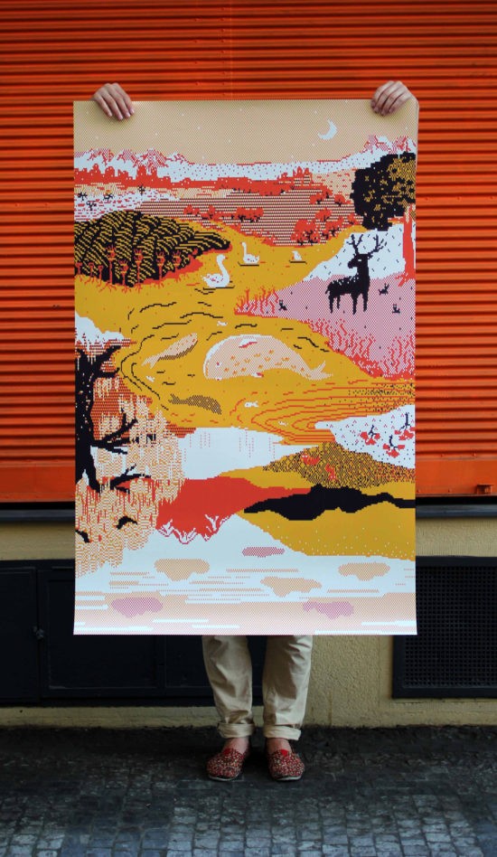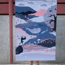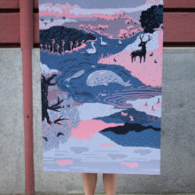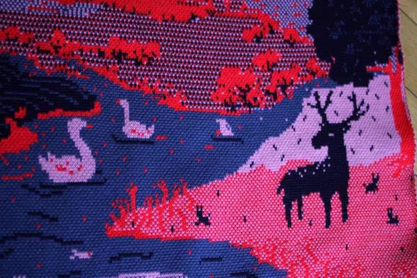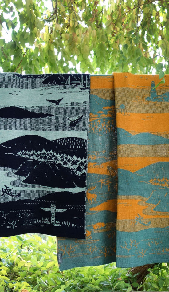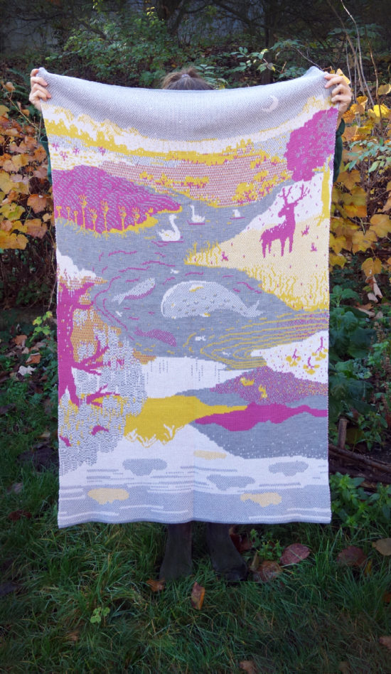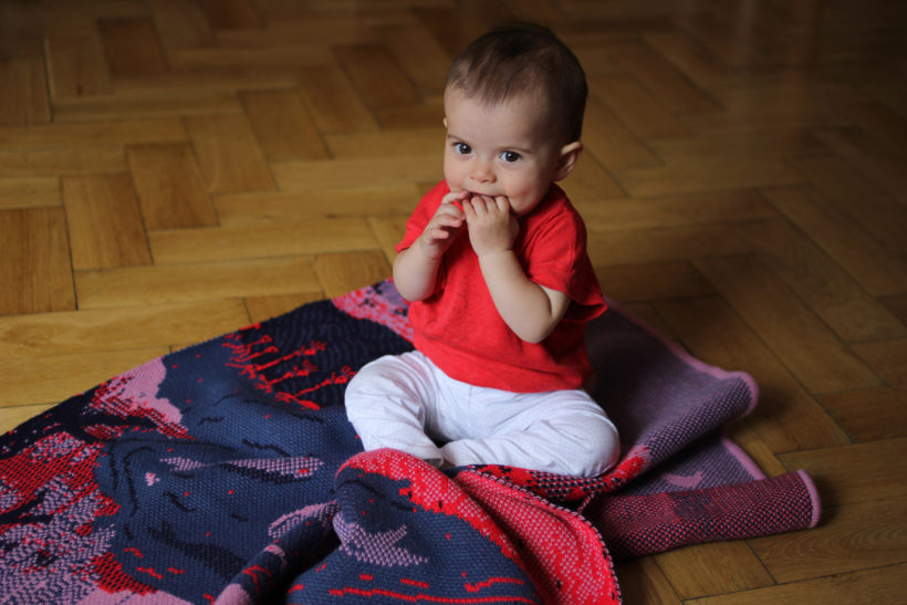 Dětská deka s motivem krajiny, která se v polovině láme a je tak pohledová z obou stran.